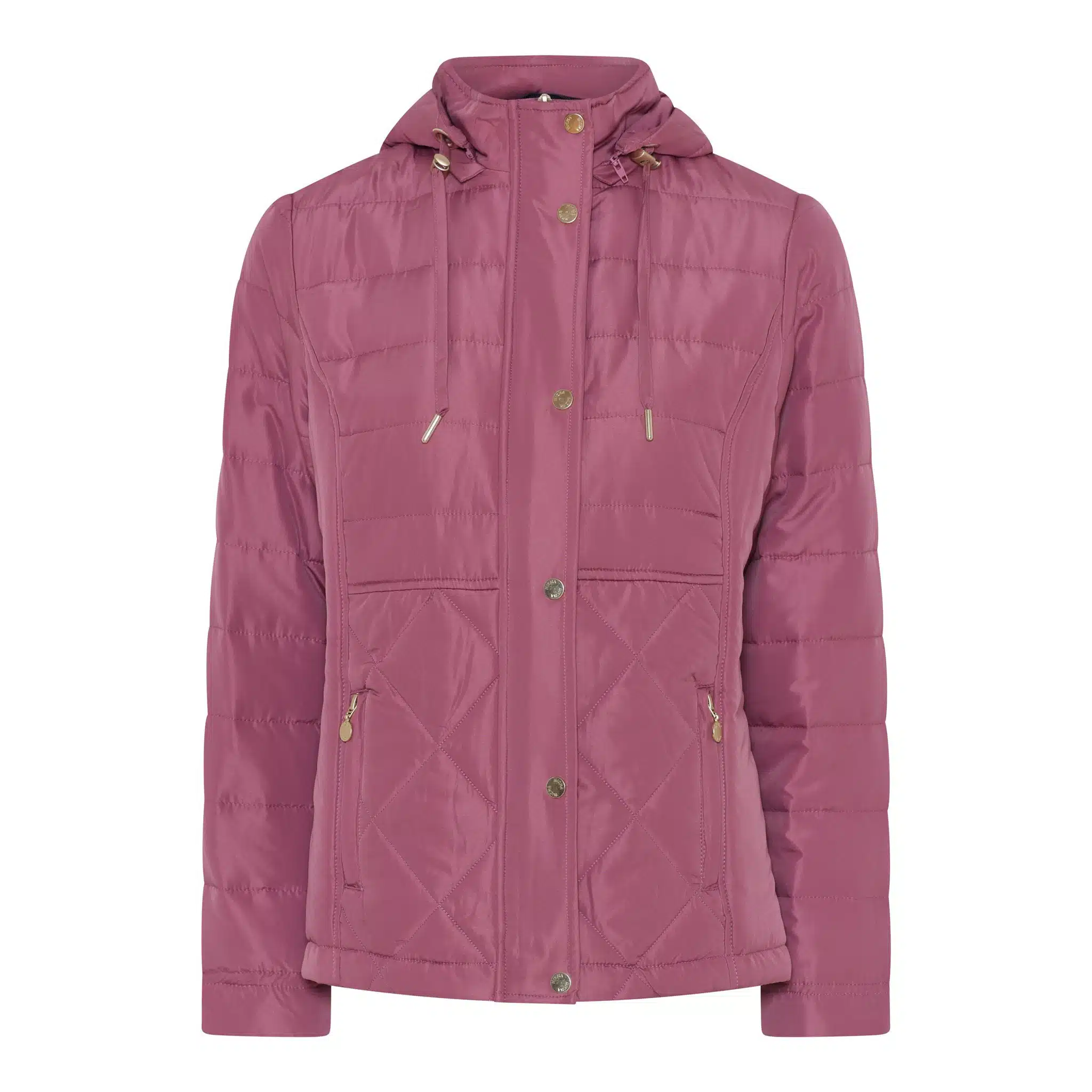Sportieve dames jas + afneembare capuchon van het merk Micha. Dit model middellang, vlot gestepte look en heeft oa ritssluitingen bij de zakken en een binnenzak. .