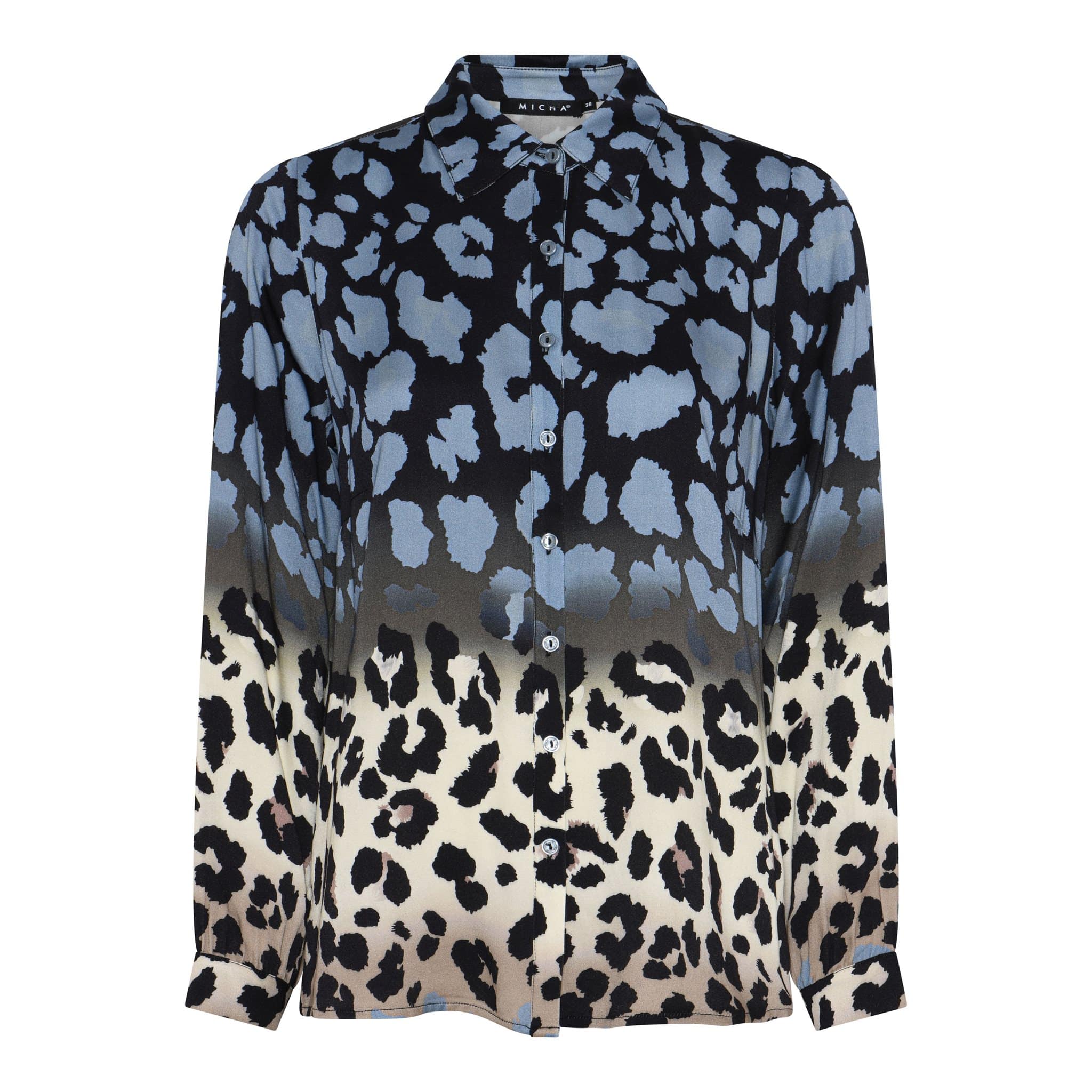 Zuiver viscose blouse, hooggesloten + knoopjes van het merk Micha. Leuk ontworpen met die prachtige subtiele animal print en met de lange mouw lengte. Uiteraard super leuk te combineren bij alle vesten en jasjes dit najaar.