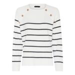 Gestreepte jumper (dunne trui) van het merk Micha. Deze fijne trui heeft een lange mouw lengte, ronde hals lijn en is hooggesloten met leuke speelse details. De subtiele kleurencombinatie is perfect voor dit voorjaar.