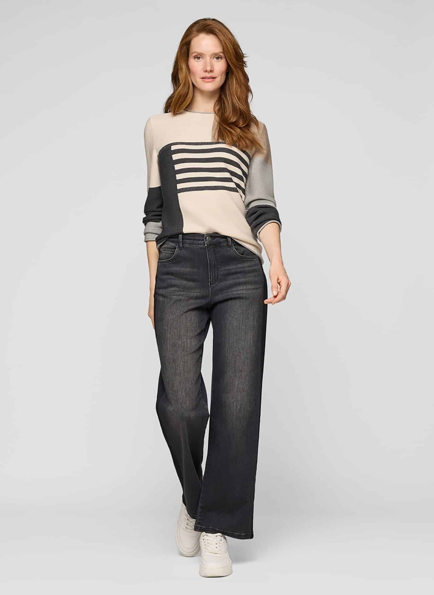 Dames trui in een zachte brei kwaliteit van het merk Rabe. Deze mooie exclusieve Rabe print in een fijne camel (winterzand) en grijze kleursamenstelling. Deze trui heeft verder leuke details o.a. de lurex verwerking aan de voorzijde. Verder een ronde halslijn en een fantastische pasvorm zoals u gewend bent van Rabe.