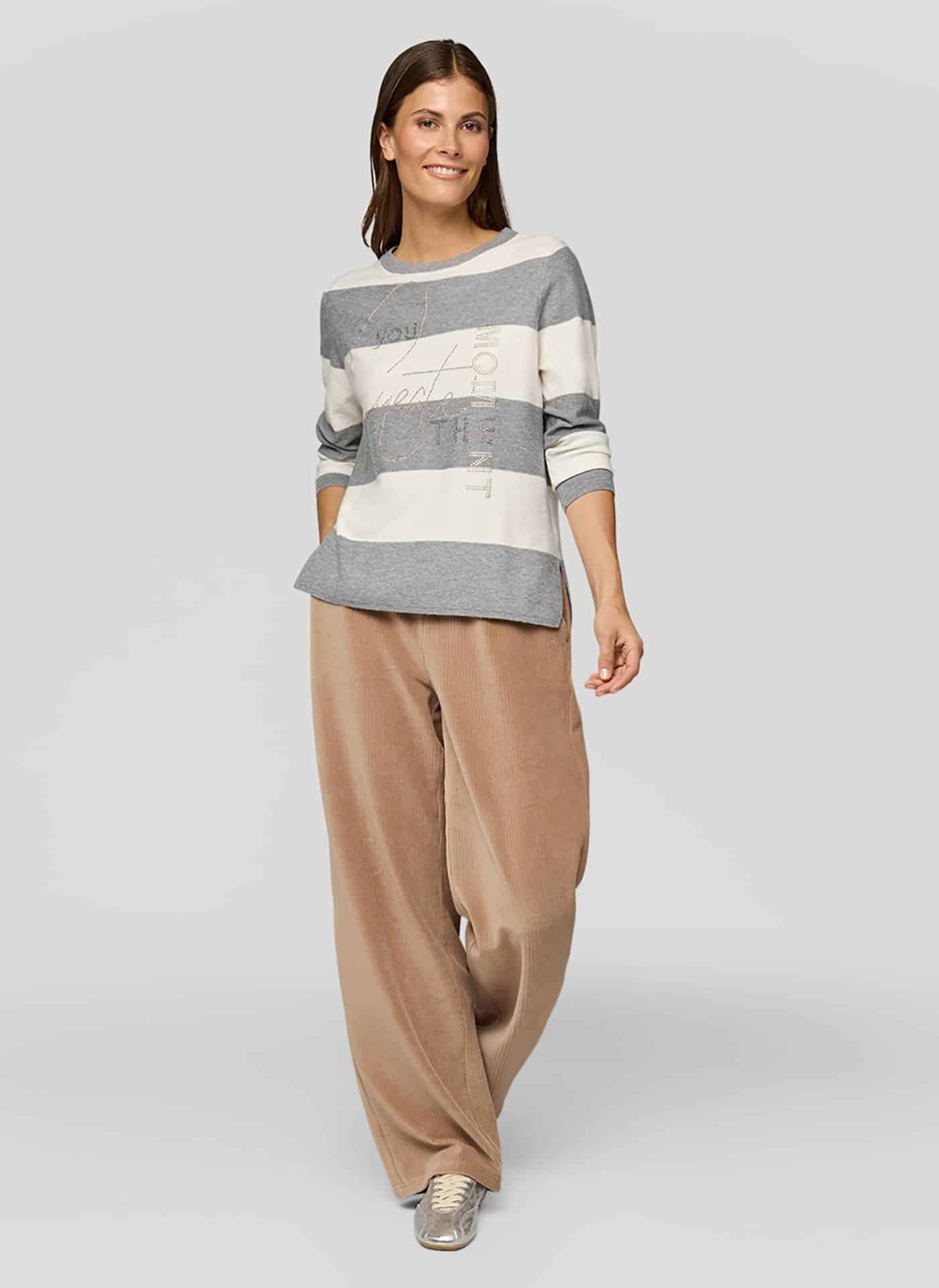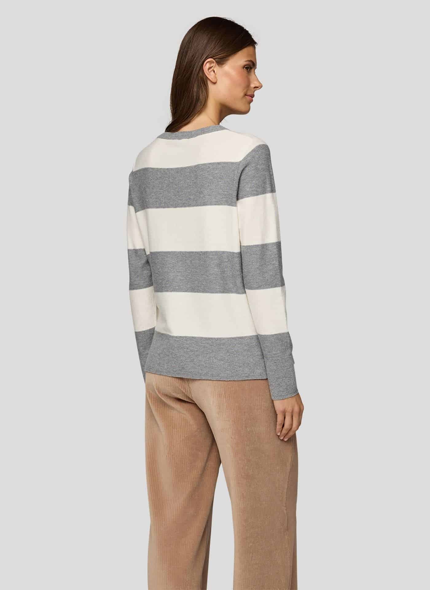 Dames trui in een zachte brei kwaliteit van het merk Rabe. Deze mooie exclusieve Rabe print in een fijne grijs witte kleursamenstelling. Deze trui heeft verder leuke details o.a. de strass steentjes aan de voorzijde. Verder een ronde halslijn en een fantastische pasvorm zoals u gewend bent van Rabe.