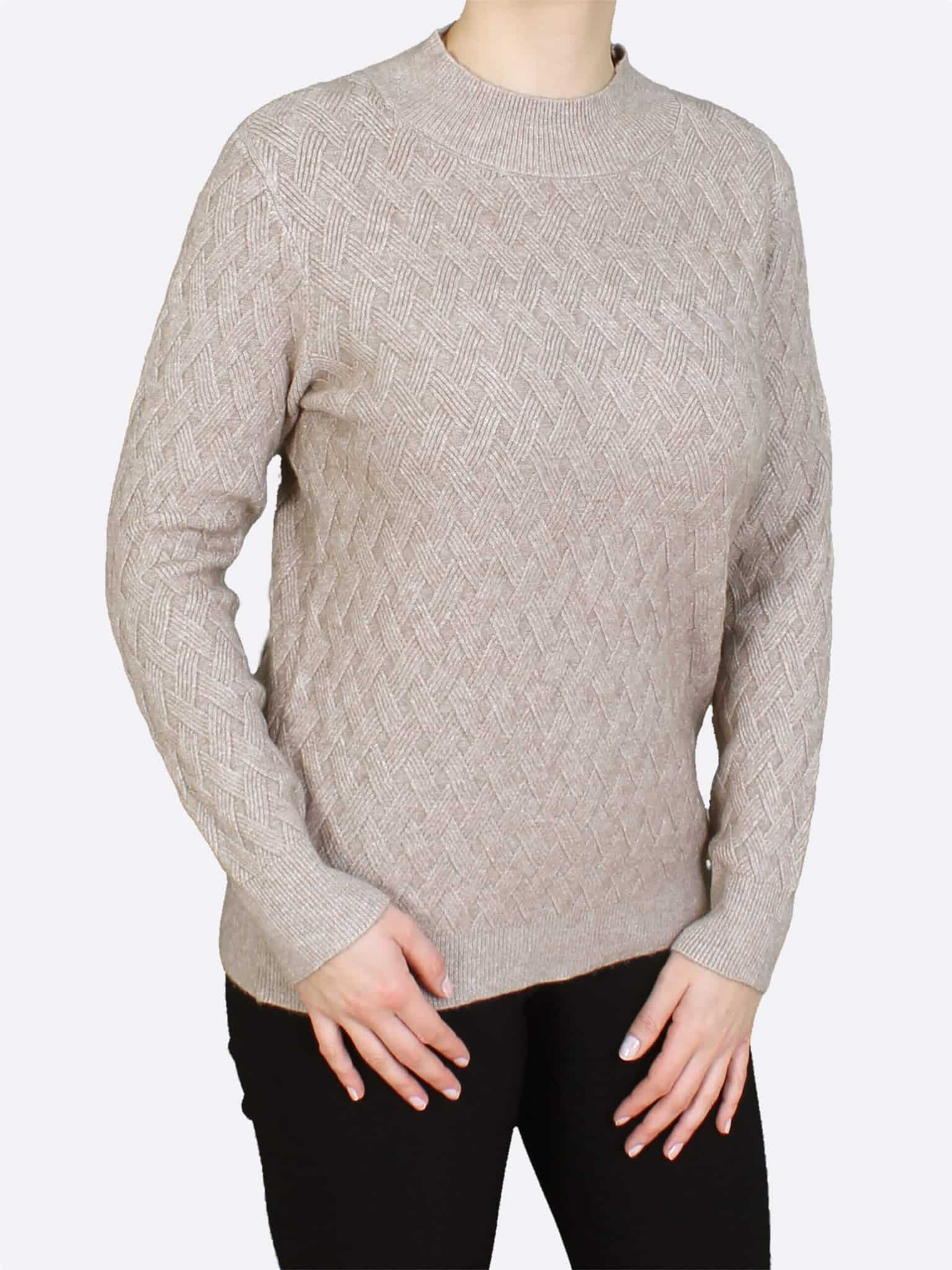 Uni trui met fijn ruit in een zachte kwaliteit met Lange mouw lengte van het merk Lea H. Subtiele uni ruit print, lang model in een mooie kleurencombinatie met zand.