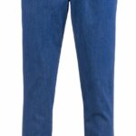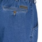 Nette jeans voor heren met elastiek rondom in de taille, Prachtig uitgewerkte pantalon met kontzak op de achterkant (zie details foto), steekzakken aan de zijkant en namaakgulp sluiting en lusjes voor eventueel een riem. Ideaal model voor heren welke geen rits of knoopsluiting willen. Dit de katoenen denim model kleur licht denim blauw.