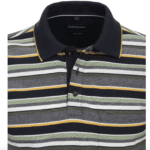 Heren polo in een mooie stretch kwaliteit gemêleerd met korte mouw en banen print. Dit polo shirt voor heren is in een fijne gemixte katoen kwaliteit, te bestellen in meerdere kleuren.