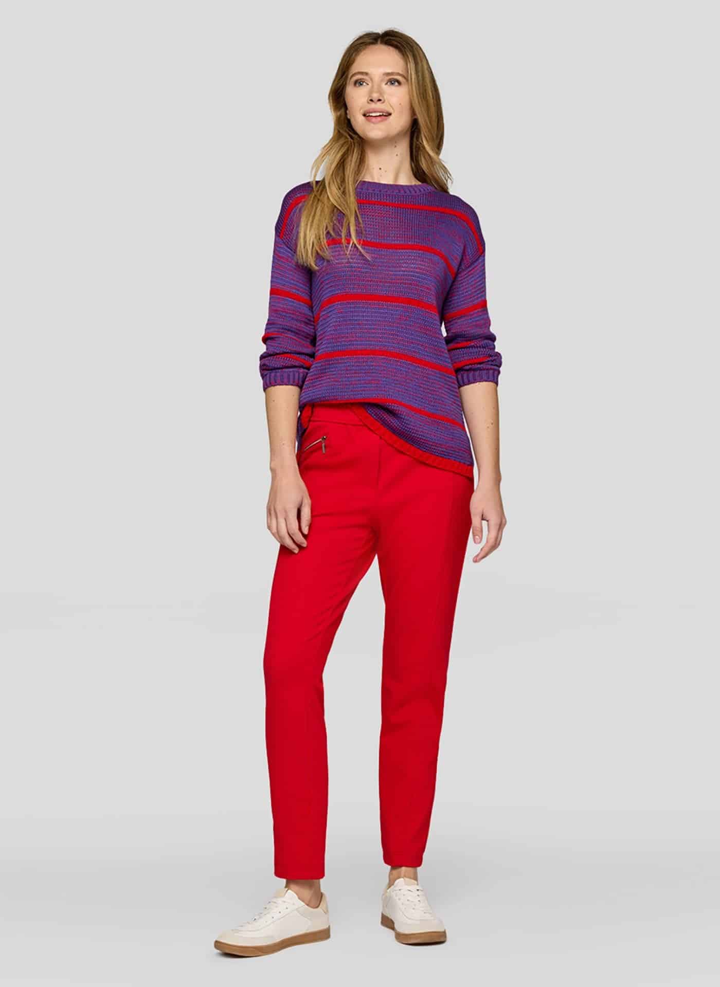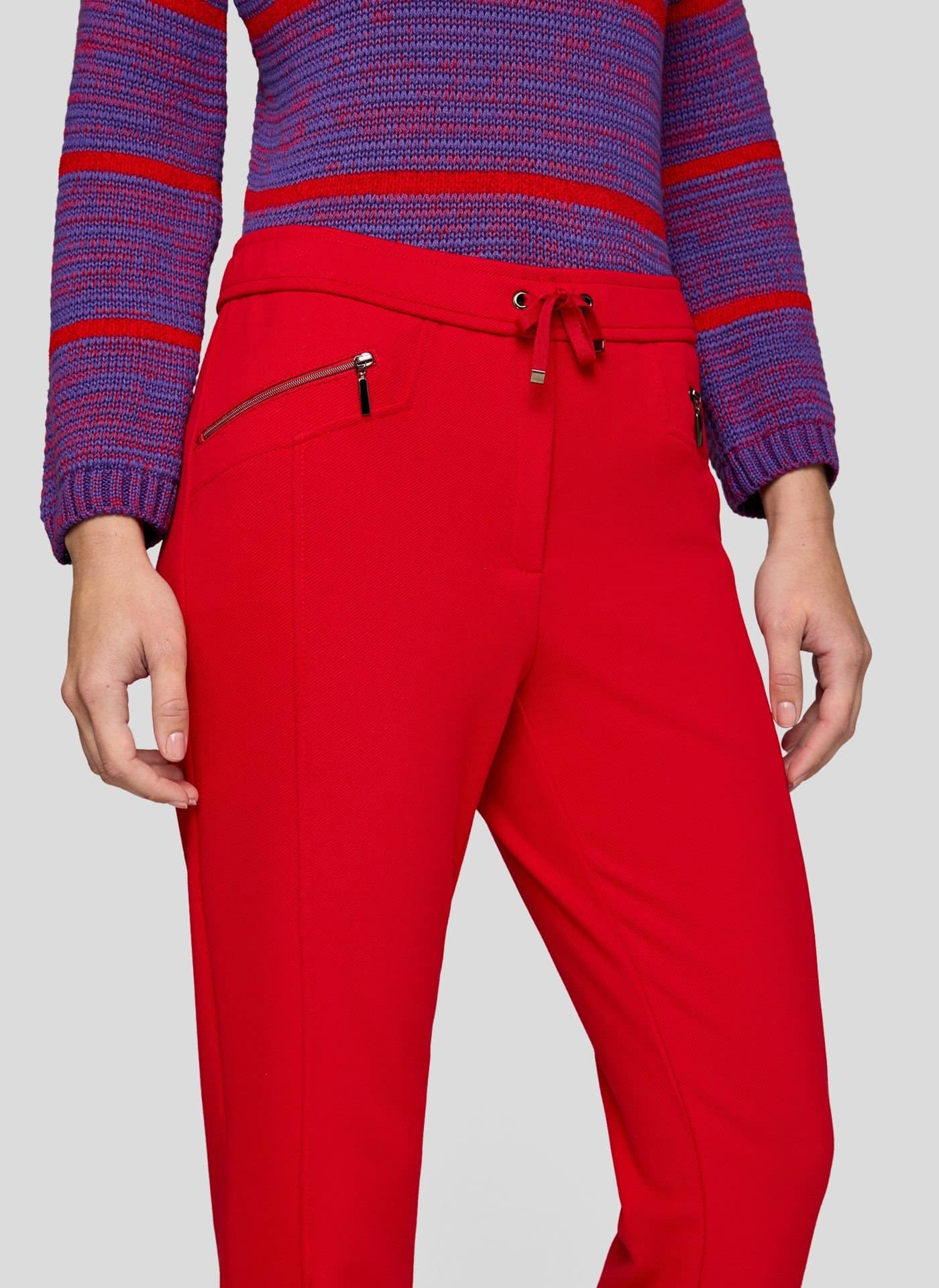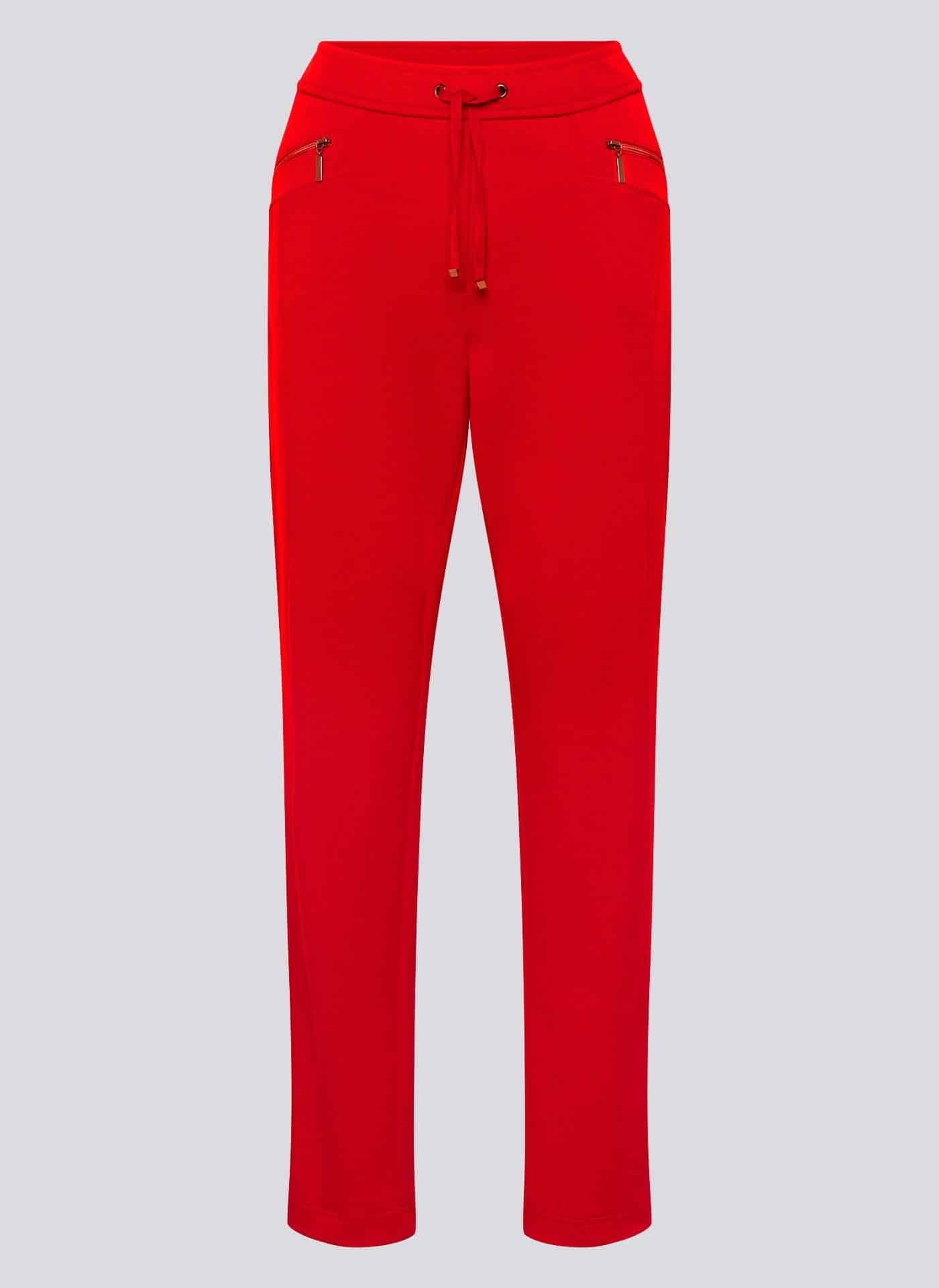 Mooie tricot (zware viscose) pantalon van het merk Rabe. Elastiek rondom met een namaakgulp en sportief look middels het zakje en koortje aan de voorzijde en een soepele elastieke band rondom. Dit model zit bijna alle dames goed!