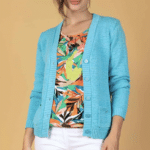 Al jaar en dag een favoriet voor velen dames dit fijne vest van bandjes garen van Roberto Sarto. Uiteraard dit seizoen weer mooie nieuwe frisse nieuwe kleuren. Dit vest heeft een lange mouw lengte en heeft 2 zakjes aan de voorkant.